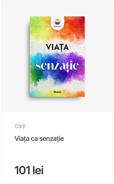 Cartea Viața ca senzație – un ghid de reflecție și orientare care aduce în prim-plan ideea că multe dintre dezechilibrele interioare pornesc de la o ruptură subtilă între corp, minte și emoție. Autoarea conturează un cadru de înțelegere a vieții cotidiene, în care detaliile simple – somnul, alimentația, mișcarea, comunicarea, ritmul intern – devin piloni ai unei vieți trăite cu autenticitate și echilibru. Cartea oferă o perspectivă asupra modului în care ne putem organiza viața, ținând cont de realitățile concrete ale zilei și de modul în care ele ne influențează energia, discernământul și starea de bine.